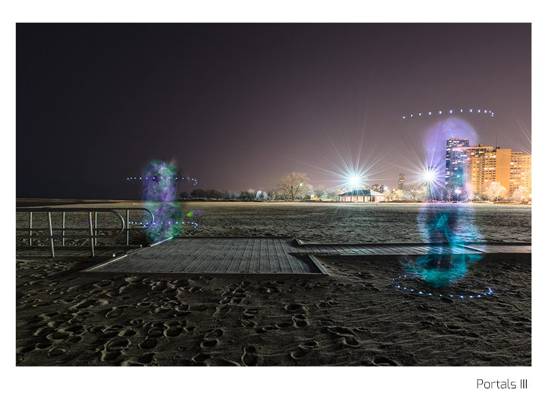 - Portals is a kind of science fiction about the nature of teleportation. Each portal of light exists in desolation, somewhere in the midst of its arrival or departure. It is inevitable, that humans will eventually have to migrate from the earth; be it for reasons of our own creation or matters out of our control. Perhaps in that future, teleportation will be the preferred means of rapid transit from the only planet humans have called home.